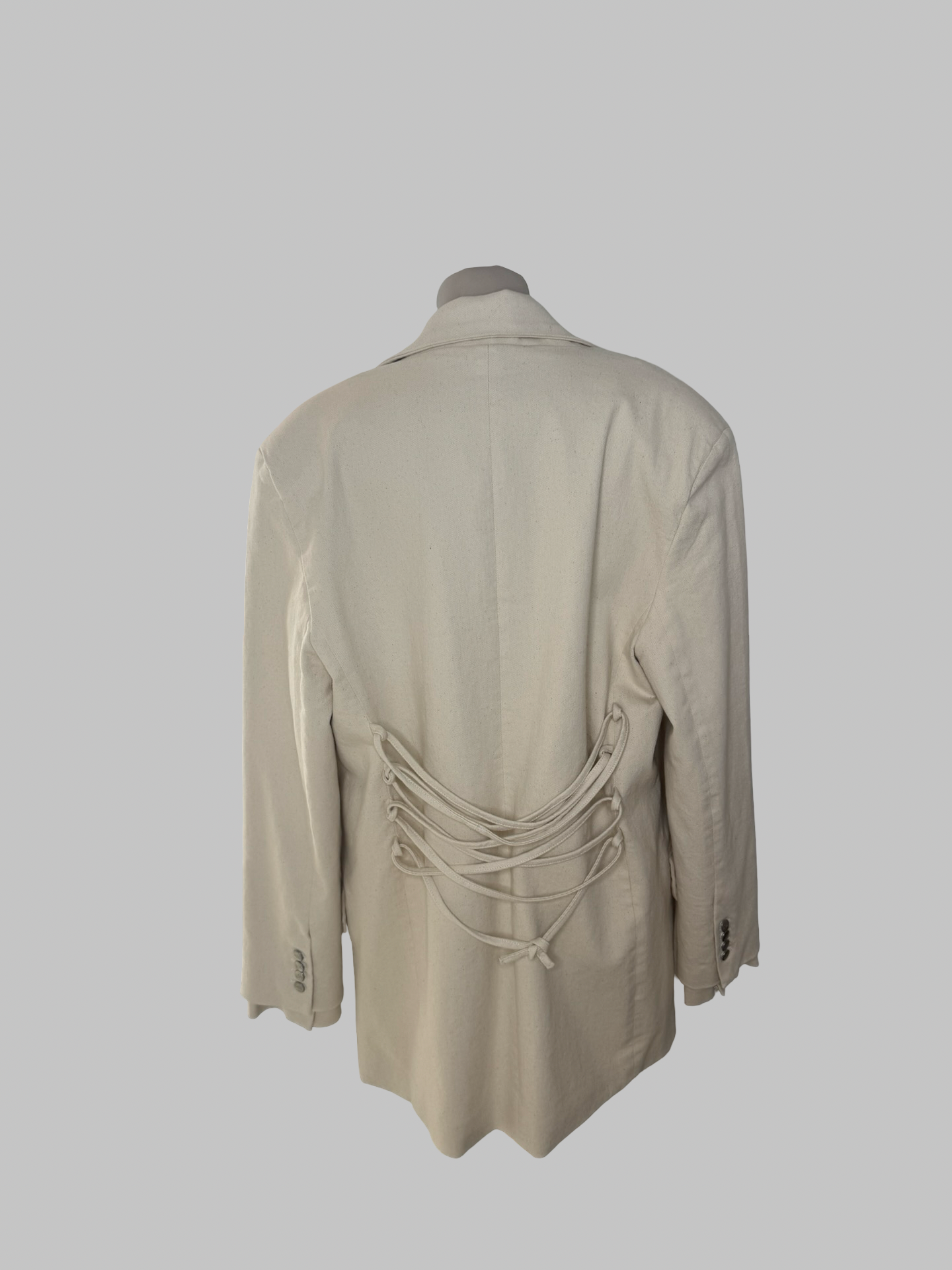 Blazer oversize en jeans blanc cassé, lacé dans le dos