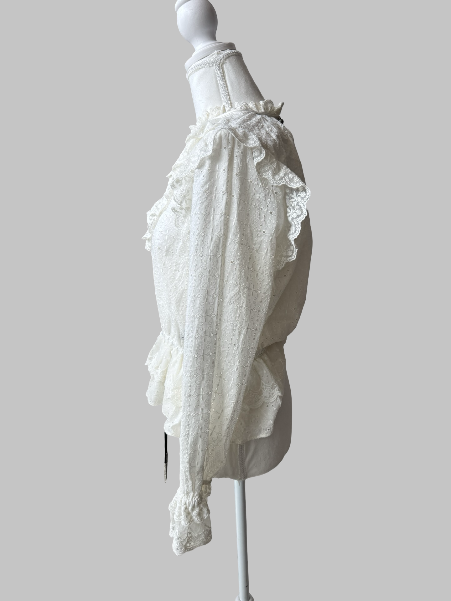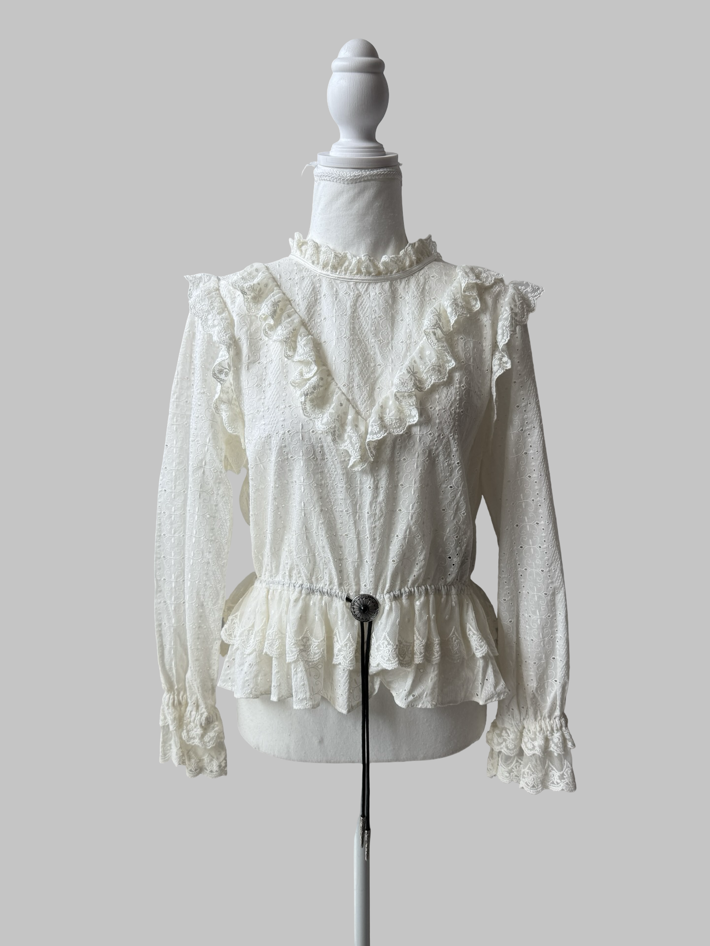 Blouse en dentelle et petit cordon ceinture façon cow-boy en cuir noir