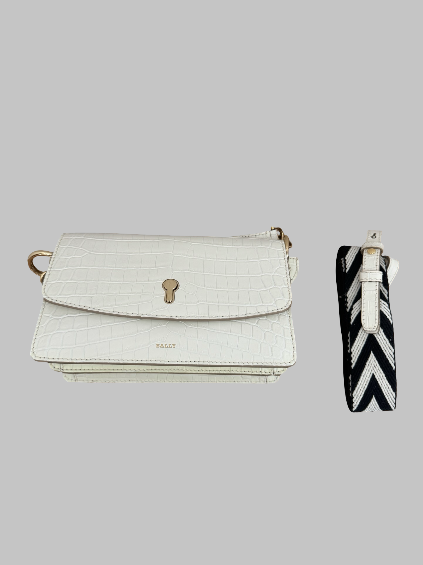 Sac Bally, Celestine en cuir blanc avec lanière noir et blanc ajustable